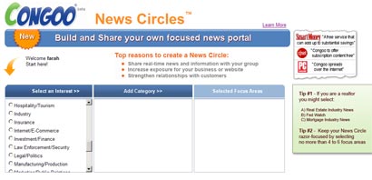 Congoo.com has launched a new service that will allow people to create News Circle on topic of their interest based on 480 predetermined categories. This customized news site could be anything from hobbies to real estate to E-commerce.