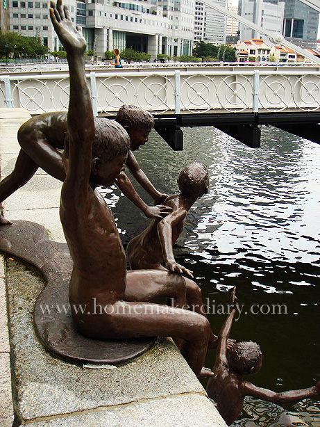 This was taken nearby the Cavenagh Bridge while walking pass the Fullerton Hotel towards the Merlion Park. I think the figurative sculptures portrays a bunch of boys jumping into the Singapore river, enjoying afternoon swim.