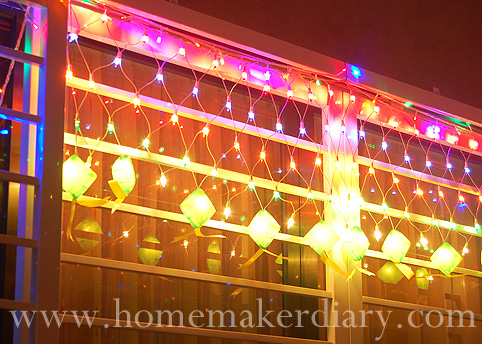 This year celebration started with lampu ketupat..heh! We bought 2 sets at Jusco, one is the LED set and the other one is the typical lampu cepat terbakar with ketupat at the bottom of the rows.