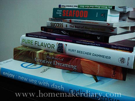I was hoping to buy craft or gardening books on the second visit, but they only have knitting related stuffs and Western garden. So I ended up buying these cooking books which mostly are hard cover or coffee table books (which all these while I can only afford to drool after checking out the normal retail price)