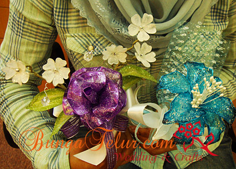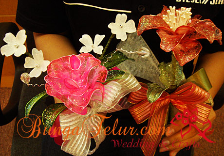 The best part of making your own bunga dip for wedding or engagement is the selection of colors. If you go to shops selling bunga dip materials like Kedai Bunga Reben and Sayang You in Jalan TAR, you will be amazed to see the varieties of colors they have. I think some of the favorite wedding/engagement theme colors are pink, purple and blue. Lately people are more daring to go for black/red or black silver combination which I personally don’t fancy so much..huhu!